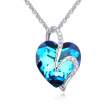 Collar en baño de oro blanco de 18 quilates, elegante diseño con corazón de cristal azul e incrustraciones de cristales en color blanco. Fabricado en una estructura de aleación de platino con rodio sin níquel.