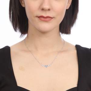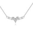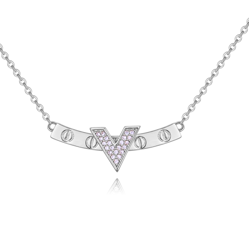 Collar en baño de oro blanco de 18 quilates, diseño de letra "V" con incrustaciones de cristales en color blanco. Fabricado en una estructura de aleación de platino con rodio sin níquel.