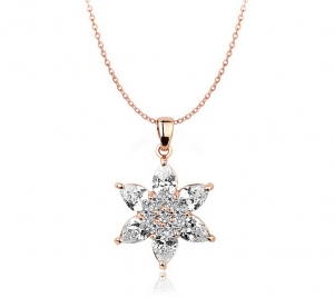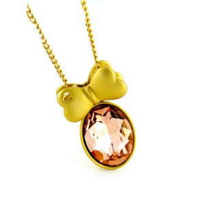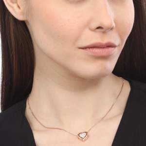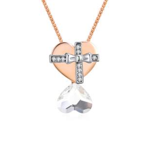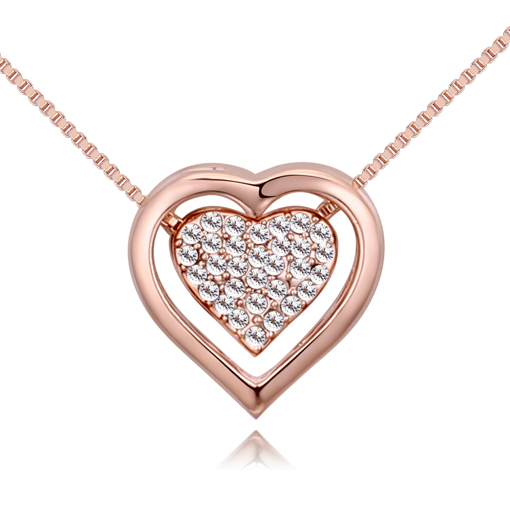 Dije con cadena en baño de oro rosa de 18 quilates, diseño de un corazón dentro de otro con incrustaciones de cristales en color blanco. Fabricado en una estructura de aleación de platino con rodio sin níquel.