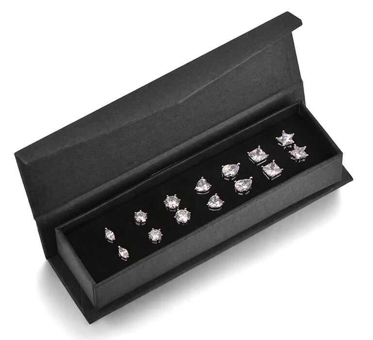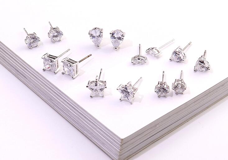 Juvenil juego de aretes en baño de oro blanco de 18 quilates, con divertidos diseños y cristales en color blanco. Fabricado en una estructura de aleación de platino con rodio sin níquel.