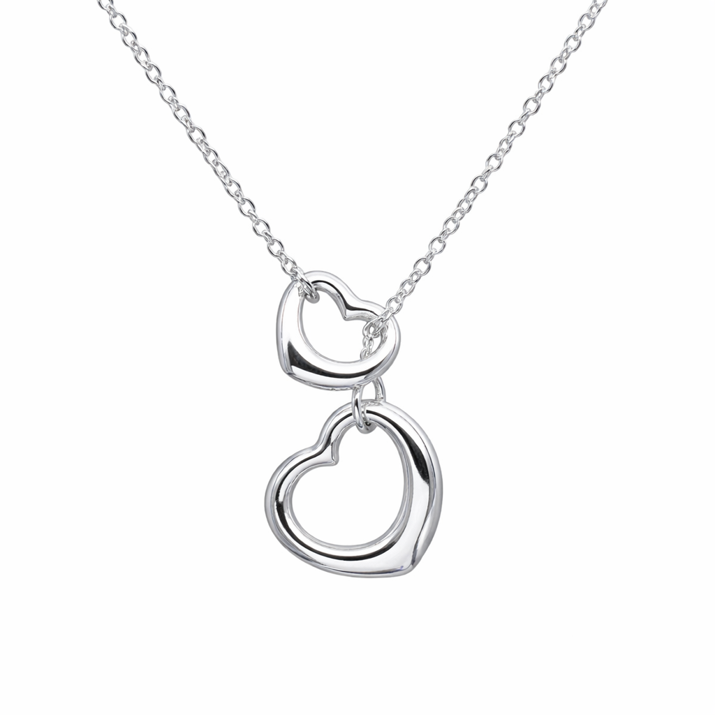 Lindo collar de plata 925, diseño de 2 corazones calados que atraviesa uno a otro.