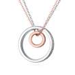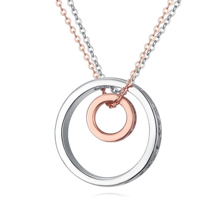 Lindo dije en baño de oro blanco y rosa de 18 quilates, diseño de aros con la leyenda, I wish you have a good luck, con incrustaciones de cristales en color blanco. Fabricado en una estructura de aleación de platino con rodio sin níquel.
