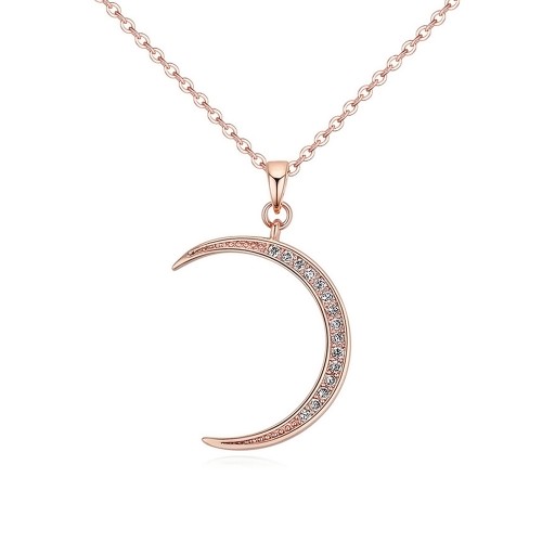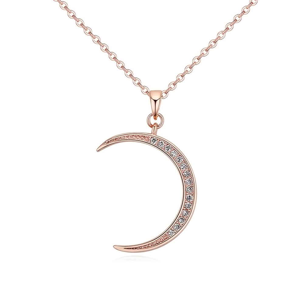 Dije en baño de oro rosa de 18 quilates, londo disño de luna con incrustaciones de cristales en color blanco. Fabricado en una estructura de aleación de platino con rodio sin níquel.