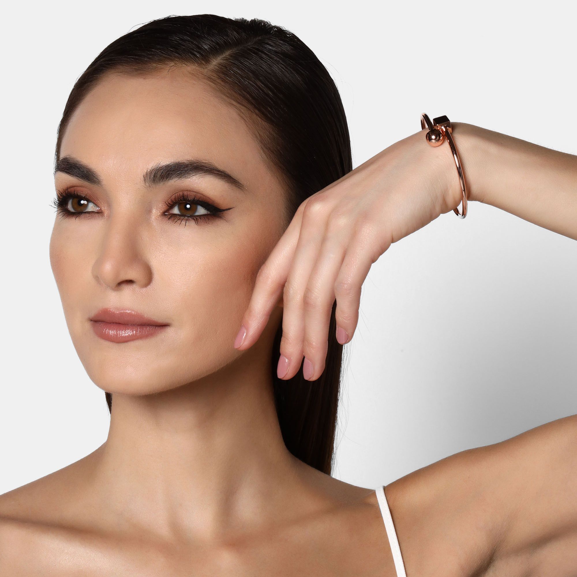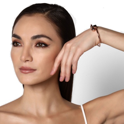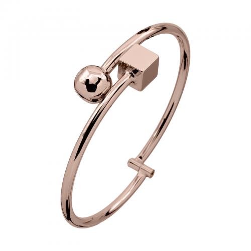 Pulsera geométricos, en baño de oro rosa de 18 quilates color rosa con cubo y esfera.