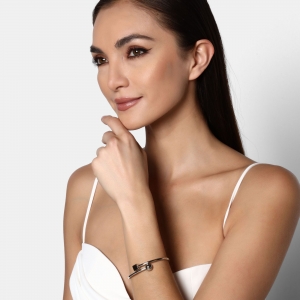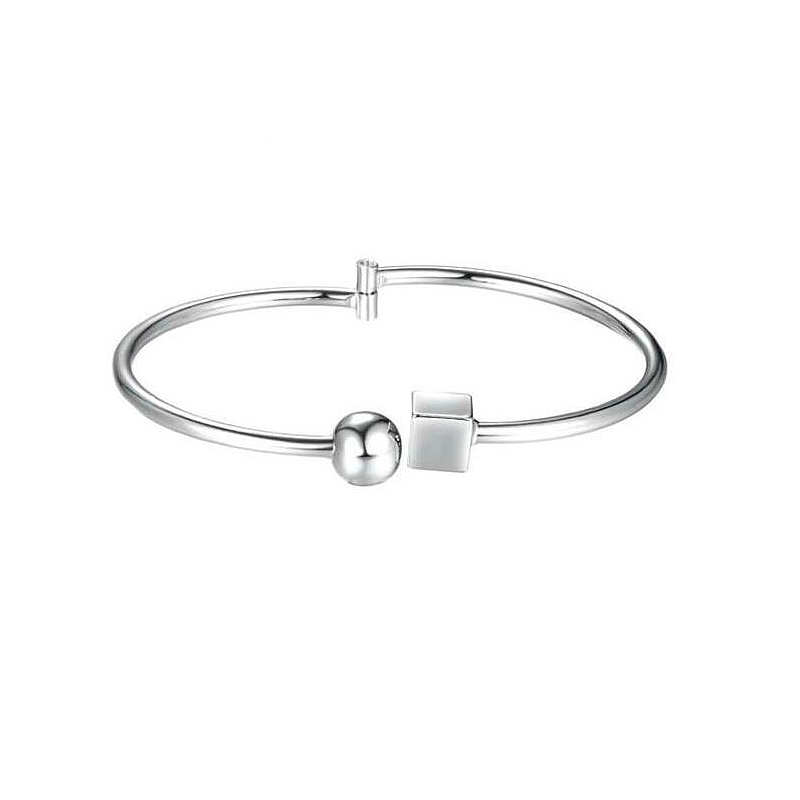 Pulsera geométricos, en baño de oro blanco de 18 quilates color blanco con cubo y esfera.