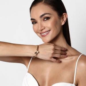 Hermoso brazalete ajustable en acero inoxidable en color dorado, elaborado con los materiales mas resistentes y con diseño elegante.