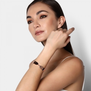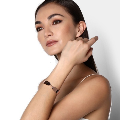 Hermoso brazalete de acero inoxidable en color rosa, elaborado con los materiales mas resistentes y con diseño elegante.