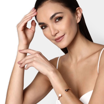 Hermoso brazalete de acero inoxidable en color rosa, elaborado con los materiales mas resistentes y con diseño elegante.