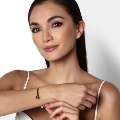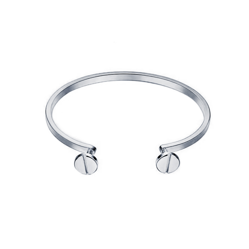 Hermoso brazalete de acero inoxidable en color plata, elaborado con los materiales mas resistentes y con diseño elegante.