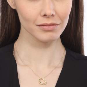 Dije con cadena en baño de oro amarillo de 18 quilates, diseño de corazón en acabado brillante. Fabricado en una estructura de aleación de platino con rodio sin níquel.
