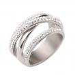 Anillo de acero inoxidable, fino diseño entrelazado, con incrustaciones de cristales en color blanco.