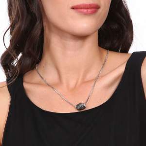 Dije con cadena de acero inoxidable, diseño de cilindro con incrustaciones de cristales en color negro.