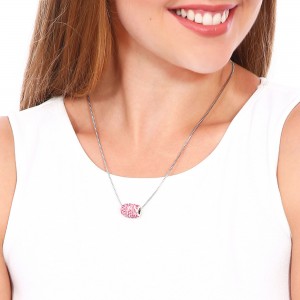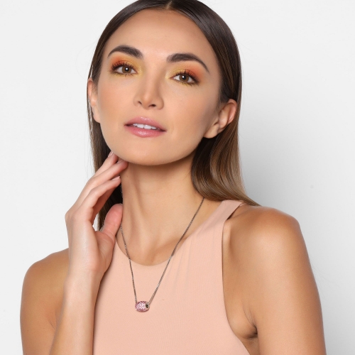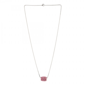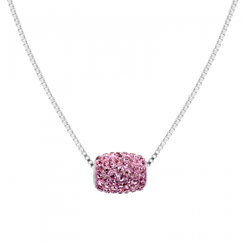 Lindo dije de acero inoxidable, diseño de cilindro con incrustaciones de cristales en color rosa.