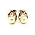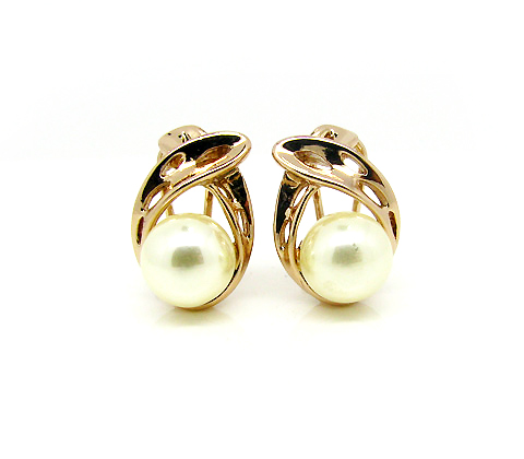 Elegantes aretes en baño de oro rosa de 18 quilates diseño cruzado con perla ivory. Fabricado en una estructura de aleación de platino con rodio sin níquel.