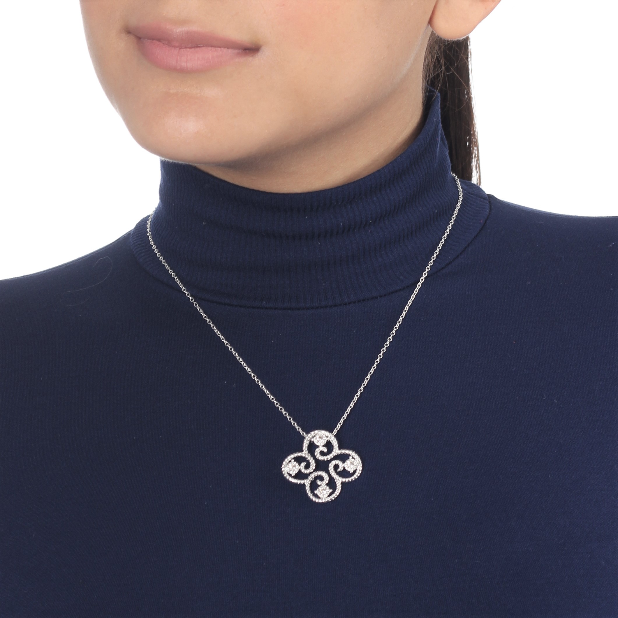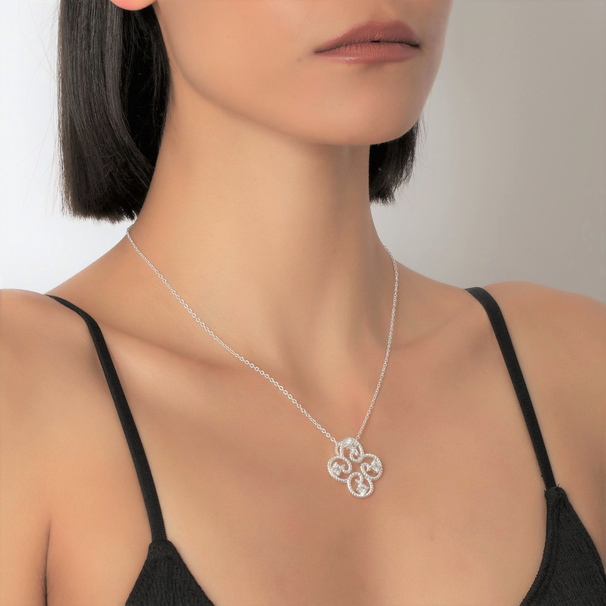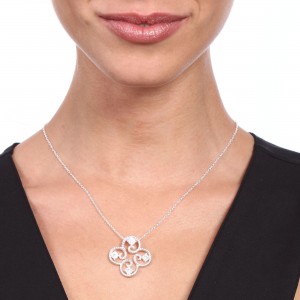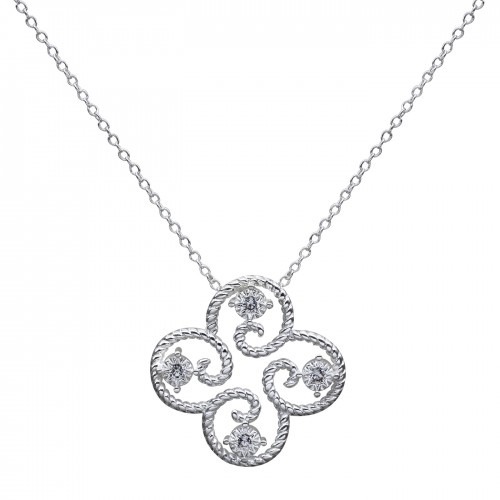 Delicado dije de plata 925, fino diseño de flor con incrustaciones de cristales en color blanco.
