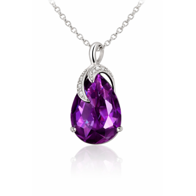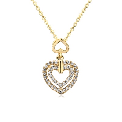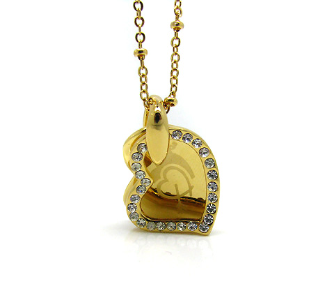 Dije con cadena en baño de oro amarillo de 18 quilates, diseño de corazón estilizado, con grabado e incrustaciones de cristales blancos. Fabricado en una estructura de aleación de platino con rodio sin níquel.