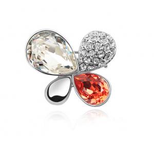 Lindo prendedor, en baño de oro blanco de 18 quilates, fino diseño de flor, con cristales ámabar y blanco corte pera y detalle plateado acabado brillante, e incrustaciones de cristales