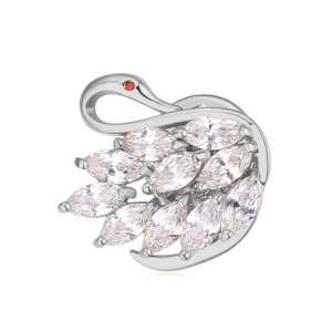 Prendedor en baño de oro blanco de 18 quilates, diseño de cisne, con cristales en color blanco corte marquesa y pequeño cristal ámbar. Fabricado en una estructura de aleación de