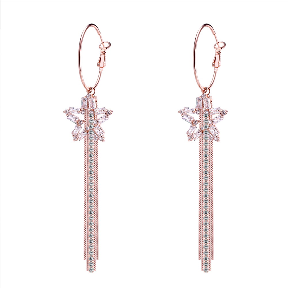 Preciosas arracadas en baño de oro rosa de 18 quilates, con diseño de estrella fugas incrustaciones de cristales en color blanco. Fabricado en una estructura de aleación de platino con rodio sin níquel.