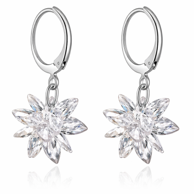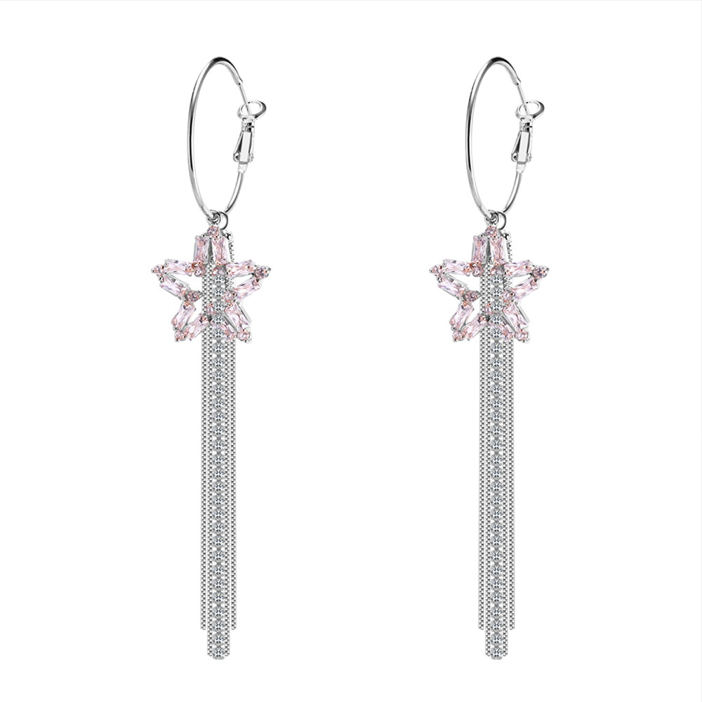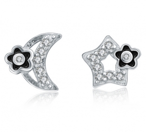 Preciosas arracadas en baño de oro blanco de 18 quilates, con diseño de estrella fugas incrustaciones de cristales en color blanco. Fabricado en una estructura de aleación de platino con rodio sin níquel.