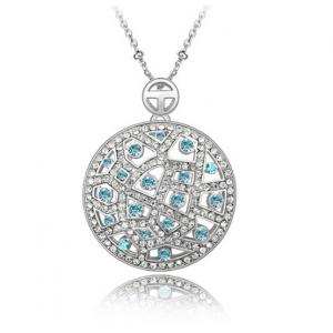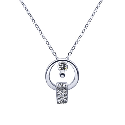Dije en baño de oro blanco de 18 quilates, diseño de corazones unidos con incrustación de cristales ámbar, tornasol y blancos. Fabricado en una estructura de aleación de platino con rodio sin níquel.