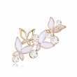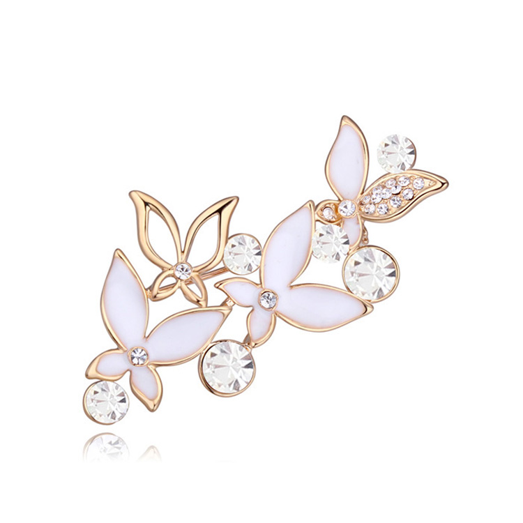 Prendedor en baño de oro amarillo de 18 quilates, diseño de mariposas con esmaltado blanco e incrustaciones de cristales en color blanco. Fabricado en una estructura de aleación de platino con rodio sin níquel.