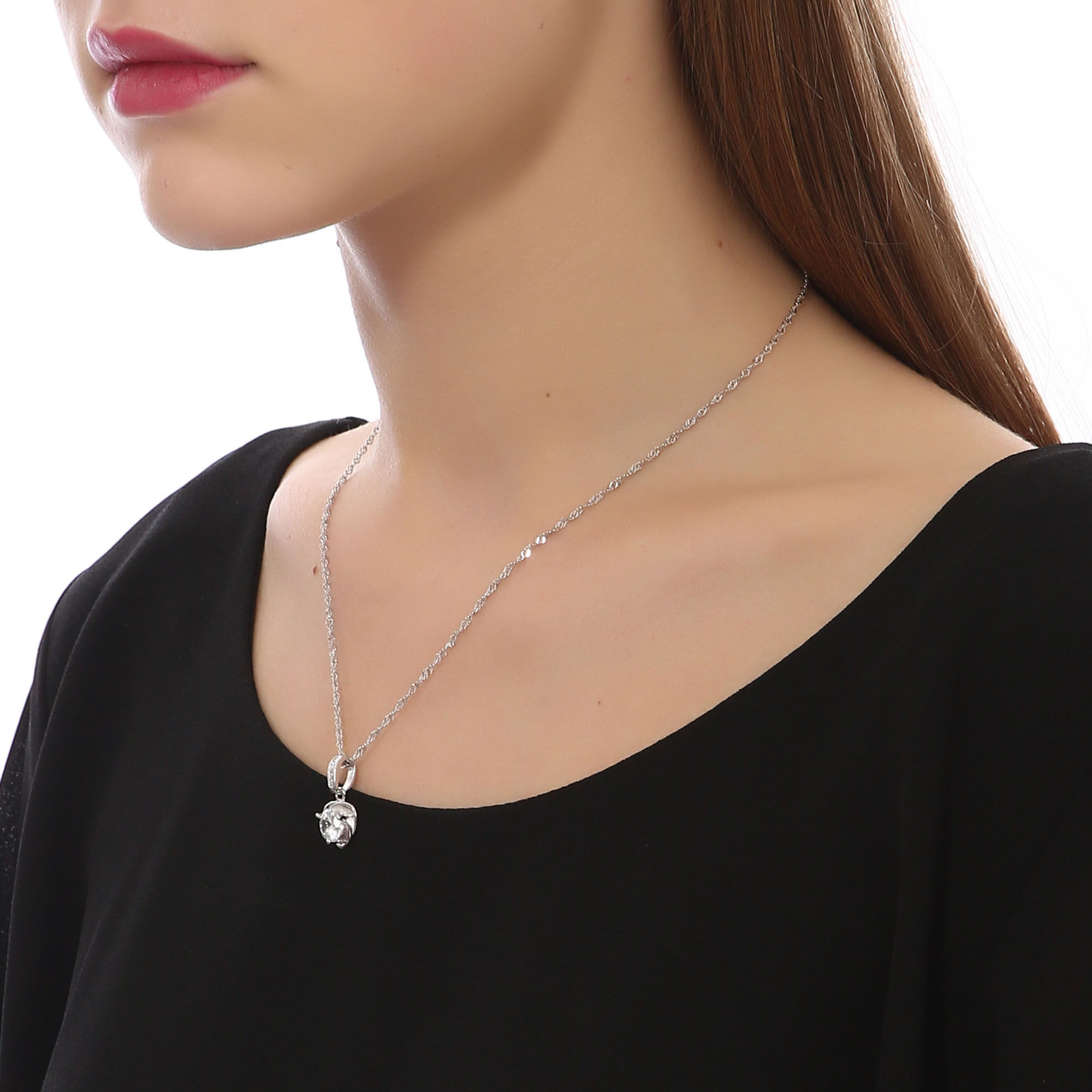 Dije con cadena en baño de oro blanco de 18 quilates , diseño de corazón con cristal blanco corte brillante e incrustaciones de cristales en color blanco. Fabricado en una estructura de aleación de platino con rodio sin níquel.