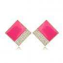 Elegantes aretes en baño de oro amarillo de 18 quilates , diseño de cuadro con esmaltado rosa con incrustaciones de cristales en color blanco. Fabricado en una estructura de aleación de platino con rodio sin níquel.
