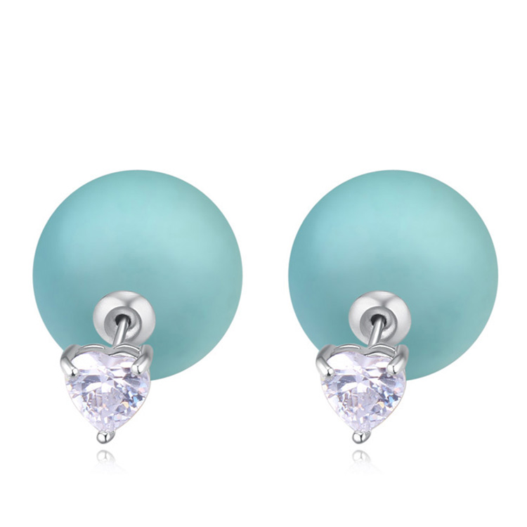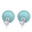 Lindos aretes en baño de oro blanco de 18 quilates , detalle de perla verde agua con cristal en color blanco, diseño de corazón. Fabricado en una estructura de aleación de platino con rodio sin níquel.
