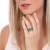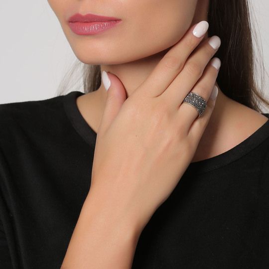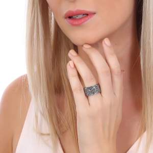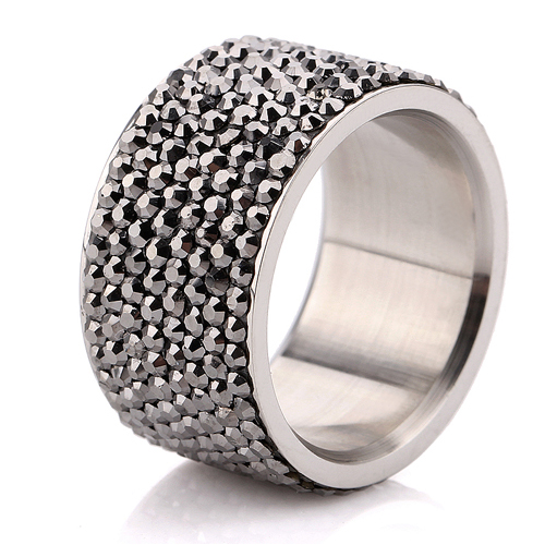 Anillo de acero inoxidable color blanco, fino diseño con incrustaciones de cristales en color Oxford.