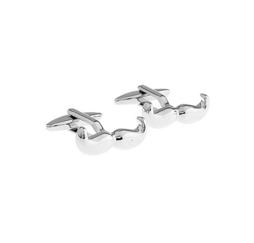 Mancuernillas de acero inoxidable, bañadas en oro blanco de 18 quilates, diseño de bigote en color blanco. Fabricado en una estructura en aleación de platino con rodio sin níquel.