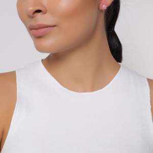 Delicados aretes en baño de oro blanco de 18 quilates, con incrustaciones de cristales en color rosa. .