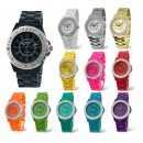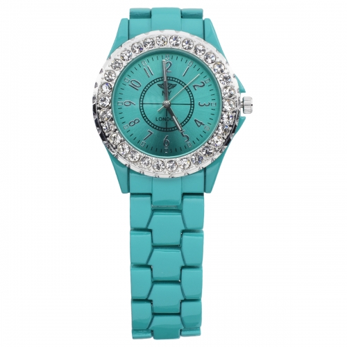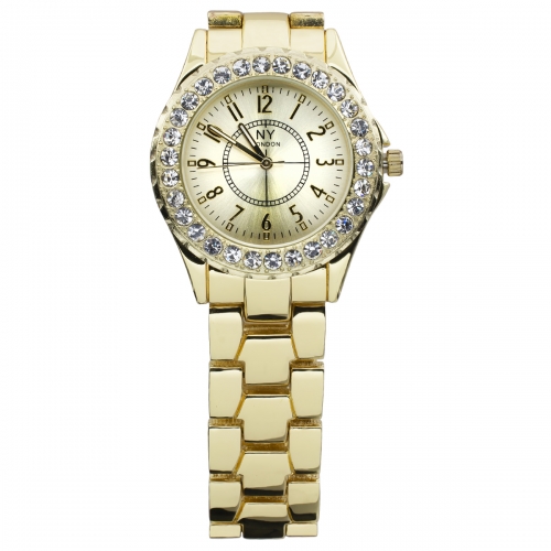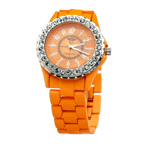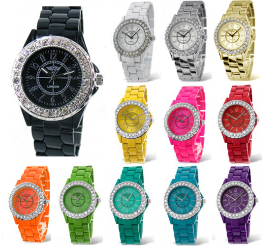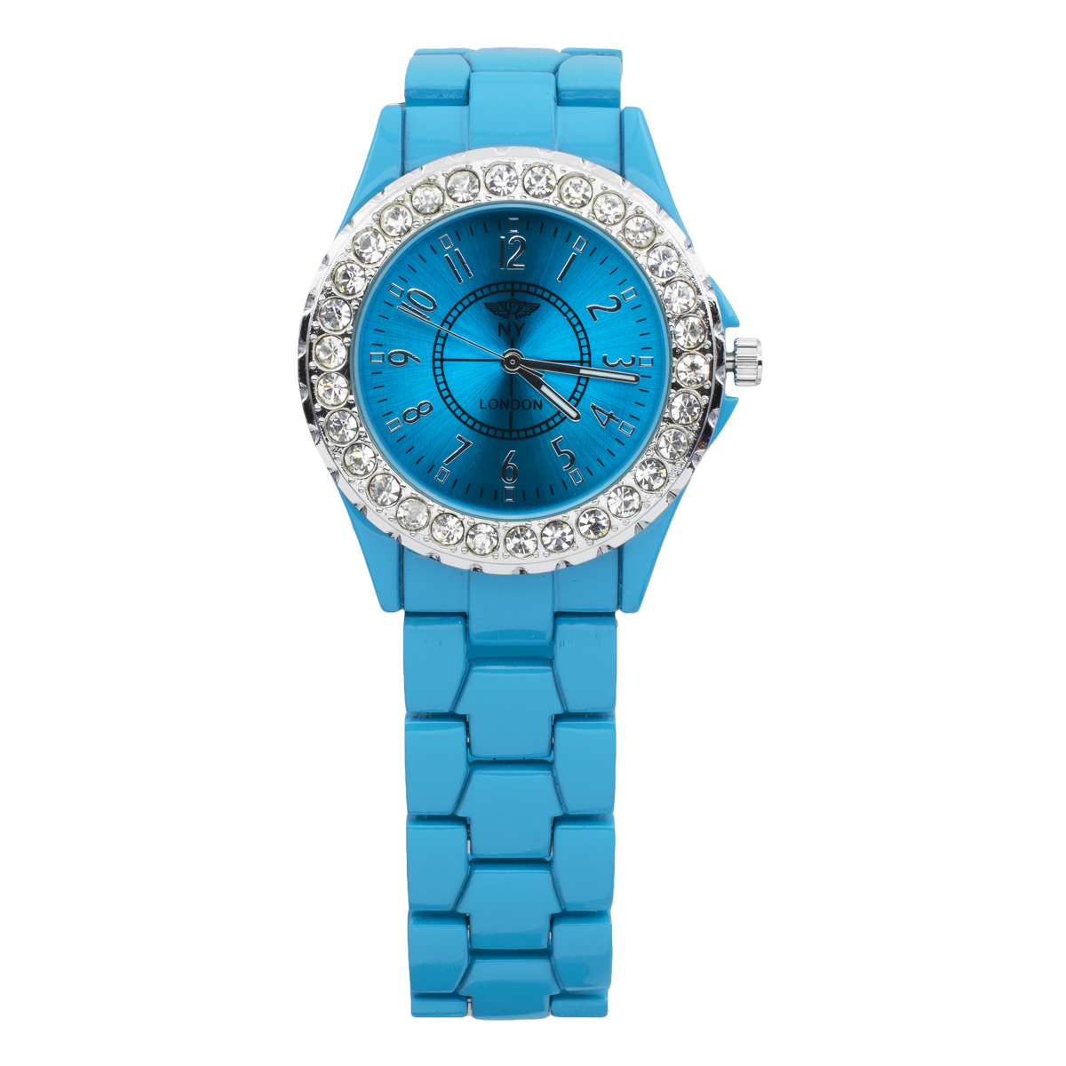 Hermoso Reloj NY, con incrustaciones de cristales blancos, con carátula y correa a juego, en acabado de colores, disponible en Negro, Blanco, Plateado, Dorado, Amarillo, Rosa, Rojo, Verde, Aqua, Turquesa y Morado.