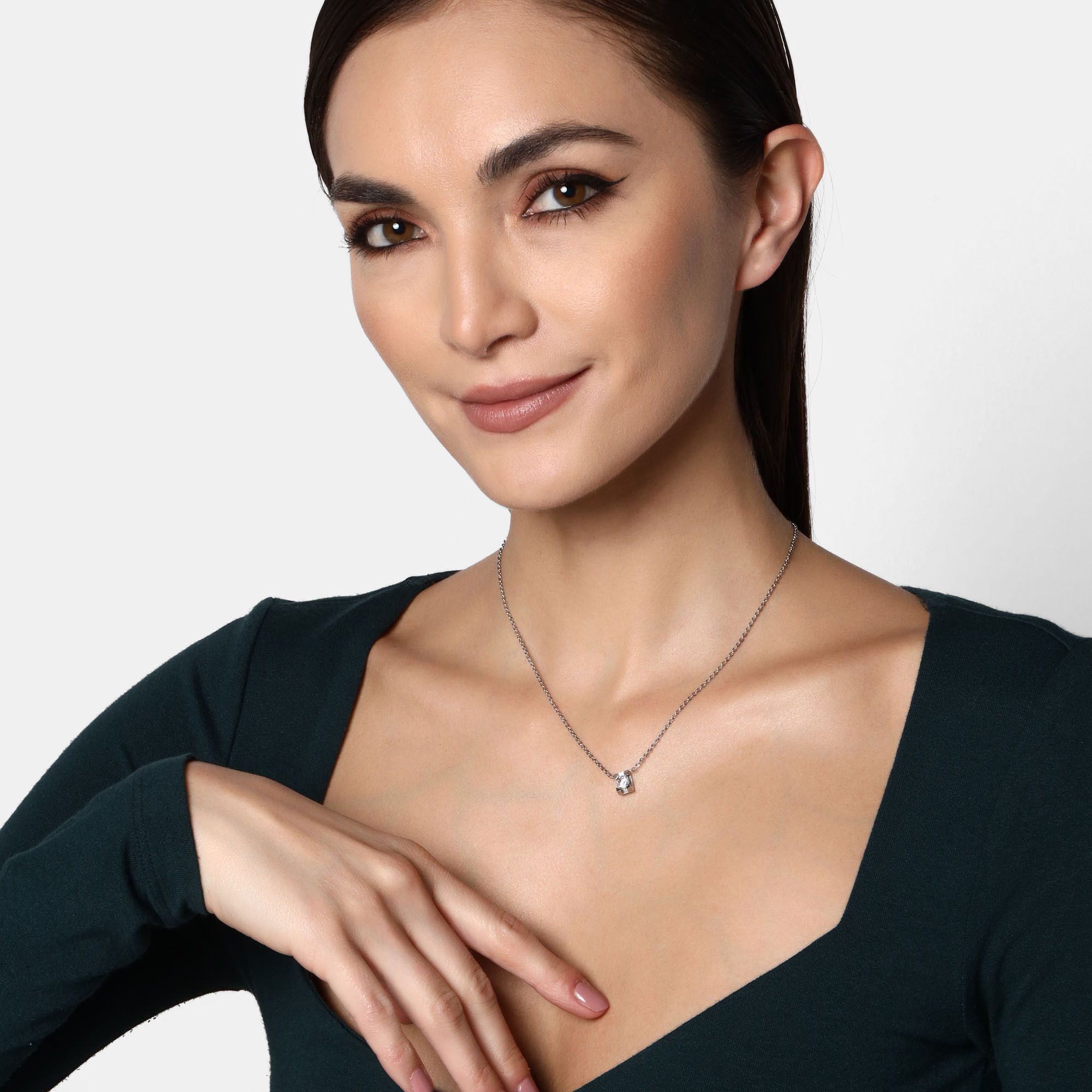Hermoso dije con cadena de acero inoxidable en color plateado, fino diseño con cristal blanco corte brillante.