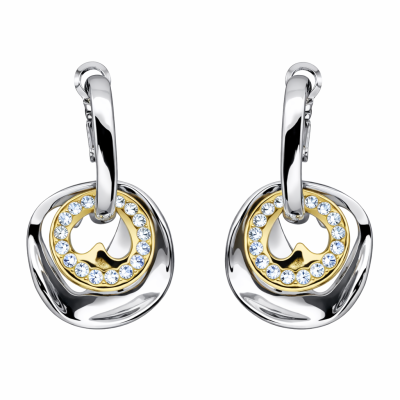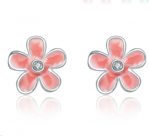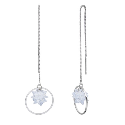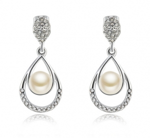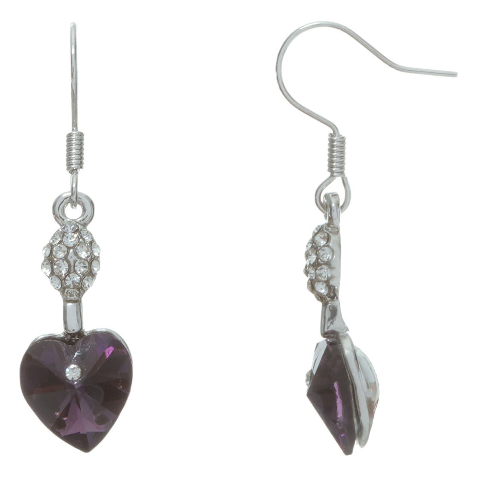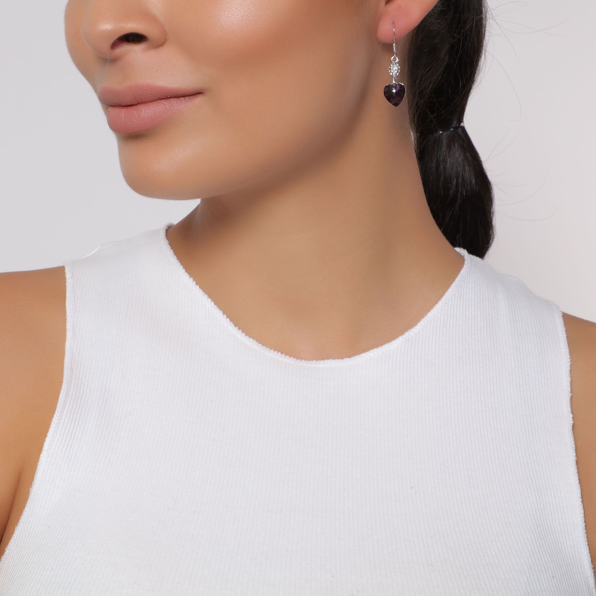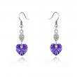Hermosos aretes en baño de oro blanco de 18 quilates , diseño de corazón con incrustaciones de cristales en color blanco y morado. fabricado en una estructura de aleación de platino con rodio sin níquel.