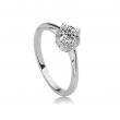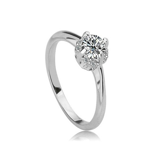 Hermoso anillo, en baño de oro blanco de 18 quilates, fino diseño, con incrustación de cristal en color blanco corte brillante. Fabricado en una estructura de aleación de platino con rodio sin níquel.
