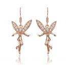 Lindos aretes en baño de oro rosa de 18 quilates , diseño de hada con incrustaciones de cristales en color blanco. Fabricado en una estructura de aleación de platino con rodio sin níquel.