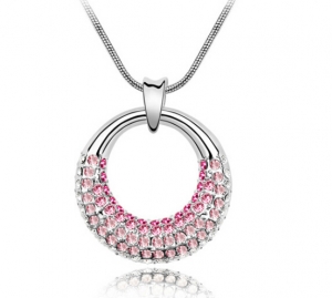 Hermoso dije con cadena en baño de oro blanco de 18 quilates, bello diseño de moño con corazones de cristal lila y delicadas chispas de cristales lilas y blancas. Fabricado en una estructura de aleación de platino con rodio sin níquel.