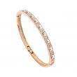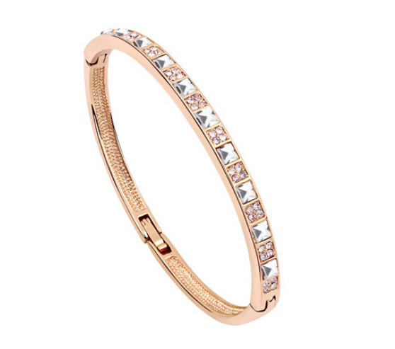 Brazalete en baño de oro amarillo de 18 quilates con incrustaciones de cristales corte princesa y corte brillante en color blanco. Fabricado en una estructura de aleación de platino con rodio sin níquel.
