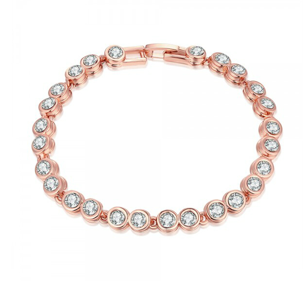 Hermoso brazalete en baño de oro amarillo de 18 quilates , con exquisitas incrustaciones de cristales en color blanco. Fabricado en una estructura de aleacion de platino con rodio sin niquel. 1. Joyeria Hipo alergenica. 2. Incluye cajita de Joyeria. 4. Garantia de 30 dias por defectos de fabrica.
