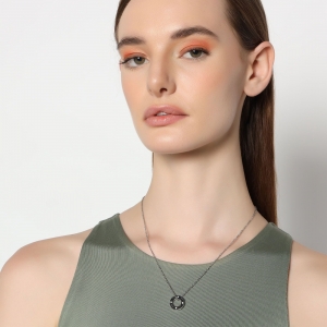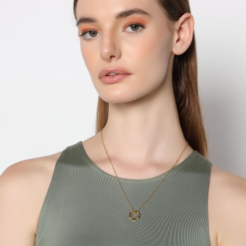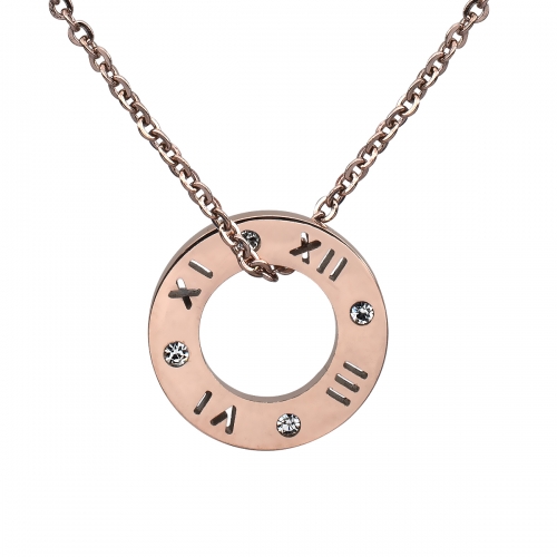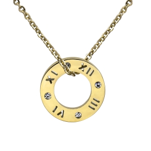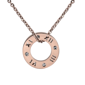 Lindo dije con cadena en acero inoxidable en color blanco, rosa o amarillo, diseño de aro con incrustaciones de cristales en color blanco.