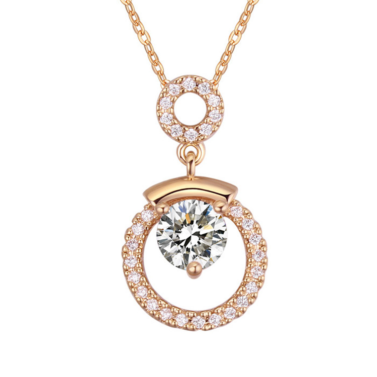 Precioso dije en baño de oro amarillo de 18 quilates , diseño de aro con incrustaciones de cristales en color blanco y cristal blanco corte brillante. Fabricado en una estructura de aleación de platino con rodio sin níquel.