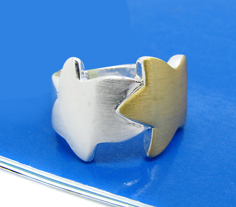 Moderno anillo, en baño de oro blanco y amarillo de 18 quilates, diseño de estrellas, en acabado satinado. Fabricado en una estructura de aleación de platino con rodio sin níquel.