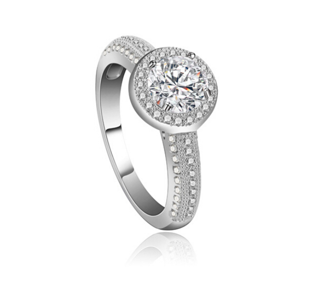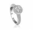 Delicado anillo, en baño de oro blanco de 18 quilates, diseño de circulo, con cristal blanco corte brillante e incrustaciones de cristales en color blanco. Fabricado en una estructura de aleación de platino con rodio sin níquel.