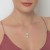 Lindo dije en baño de oro blanco de 18 quilates , diseño de círculo con incrustaciones de cristales blancos y perla blanca pendiendo. Fabricado en una estructura de aleación de platino con rodio sin níquel.
