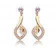 Aretes en baño de oro amarillo de 18 quilates , fino diseño con cristal ámbar corte oval e incrustaciones de cristales color blanco. Fabricado en una estructura de aleación de platino con rodio sin níquel.