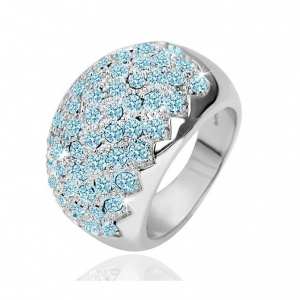 Anillo en baño de oro blanco de 18 quilates, diseño convexo, con incrustaciones de cristales en color azul.Fabricado en una estructura de aleación de platino con rodio sin níquel.1. Joyería